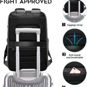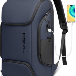 BANGE laptop backpack made of high-density oxford fabric not only waterproof but also scratch-resistant.The front pocket can hold daily needs such as key ,cellphone,wallet and so on,the main pocket can contain 5-6pcs clothes suitable as overnight backpack or business trip bag,Laptop compartment can hold 15.6 inch laptop and 9.7 inch IPad ,rationally divided pocket protect your electronic products,Two side pocket can hold your power bank ,umbrella,bottle etc.Fight approved size with luggage strap don’t worry TSA problem and be convenient of your travel