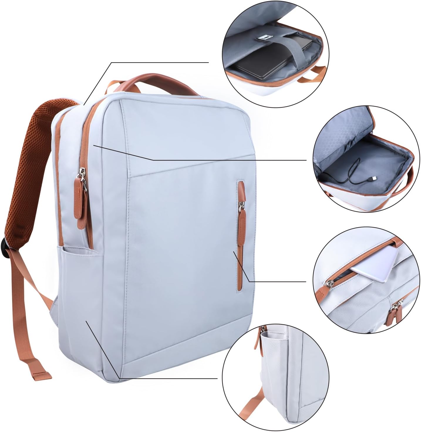 Ramhorn Laptop Backpacks Fits 15.6-inch Laptops Travel Work Backpack for Women and Men, Grey